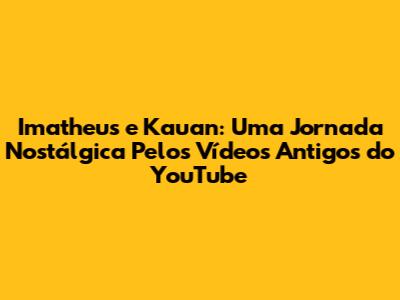 Ah, os bons e velhos tempos do YouTube! Lembra quando a plataforma ainda estava engatinhando, mas já nos proporcionava momentos de pura diversão e entretenimento? Se você, assim como eu, sente saudades daquela época, prepare-se para uma viagem no tempo! Vamos mergulhar no universo de Imathens e Kauan, uma dupla que marcou época com seus vídeos originais e cheios de humor. Se você está curioso para saber mais sobre essa dupla icônica e reviver os melhores momentos dos seus vídeos antigos, continue lendo. Afinal, quem não gosta de uma boa dose de nostalgia, não é mesmo?