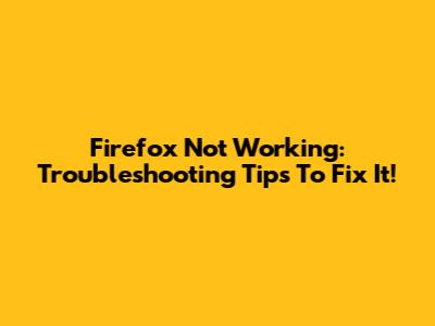 Firefox Not Working: Troubleshooting Tips To Fix It!