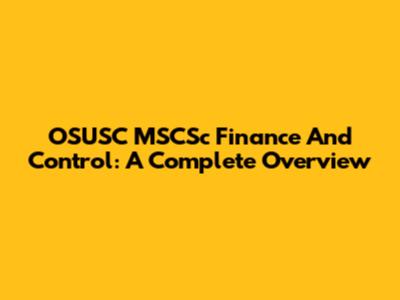 OSUSC MSCSc Finance And Control: A Complete Overview