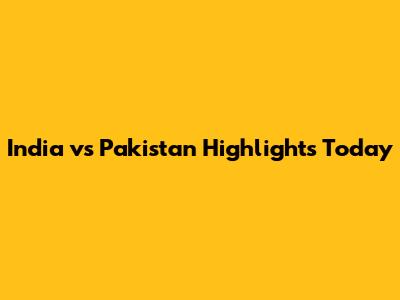 India Vs Pakistan Highlights Today