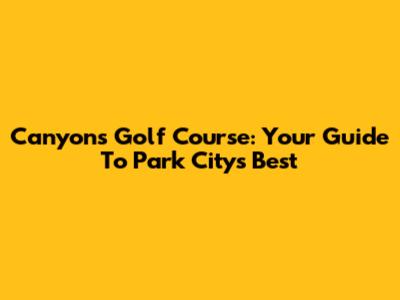 Canyons Golf Course: Your Guide To Park City's Best