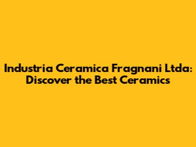 Let's dive into the world of Industria Ceramica Fragnani Ltda, a leading name in the ceramics industry. This article will explore everything you need to know about them, from their history and product range to their commitment to quality and innovation. So, buckle up and get ready to discover the best ceramics!