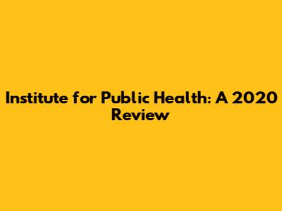 Institute For Public Health: A 2020 Review