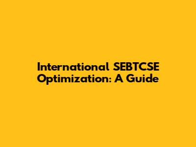 International SEBTCSE Optimization: A Guide