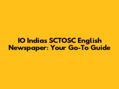 IO India's SCTOSC English Newspaper: Your Go-To Guide