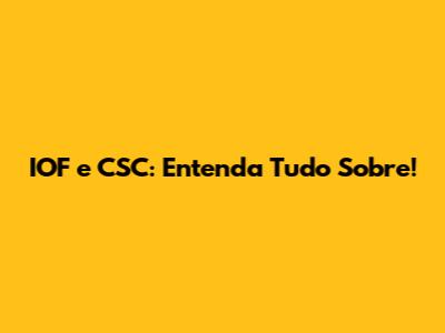 IOF E CSC: Entenda Tudo Sobre!