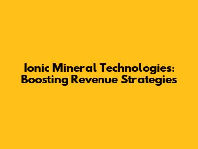 Ionic Mineral Technologies: Boosting Revenue Strategies