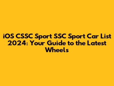 IOS CSSC Sport SSC Sport Car List: What's New In 2024?