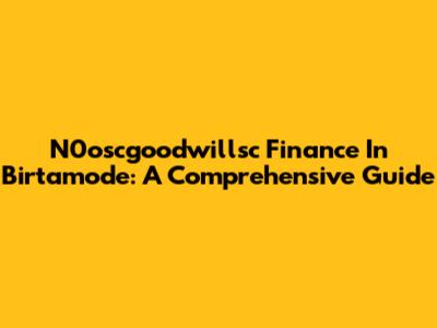 N0oscgoodwillsc Finance In Birtamode: A Comprehensive Guide