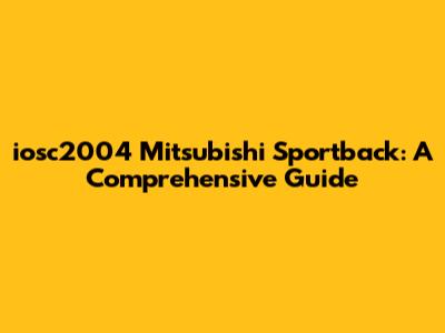 Hey guys, let's dive into the iosc2004 Mitsubishi Sportback, a car that's got a bit of a cult following! We'll explore its history, common problems, and how to keep yours running smoothly. If you're a proud owner or just curious about this sporty hatchback, you're in the right place. This guide will provide you with a detailed overview. Whether you are seeking information on the Sportback's performance, the history behind its creation, or its most prevalent issues, this guide aims to be your go-to resource. We're also going to look at the common issues faced by owners and how to address them. So, buckle up, and let's get started on our journey through the world of the iosc2004 Mitsubishi Sportback!