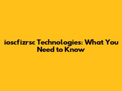 Ioscfizrsc Technologies: What You Need To Know