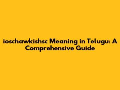 Ioschawkishsc Meaning In Telugu: A Comprehensive Guide