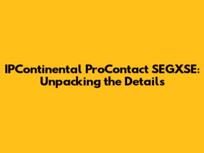 IPContinental ProContact SEGXSE: All You Need To Know