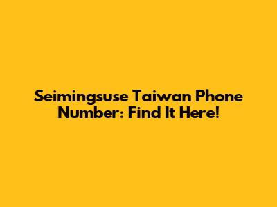 Seimingsuse Taiwan Phone Number: Find It Here!