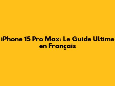 IPhone 15 Pro Max: Le Guide Ultime En Français