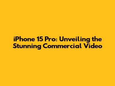 Hey guys! Let's dive straight into the buzz surrounding the iPhone 15 Pro and its amazing commercial video. This isn't just another ad; it's a carefully crafted piece of art designed to showcase everything the iPhone 15 Pro brings to the table. In this article, we're going to break down what makes this commercial so captivating, explore the key features highlighted, and discuss the overall impact it's having on the tech world. So, buckle up and get ready for an in-depth look!