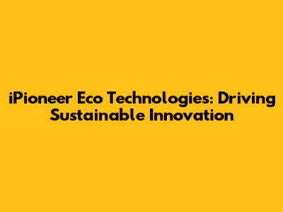 IPioneer Eco Technologies: Driving Sustainable Innovation