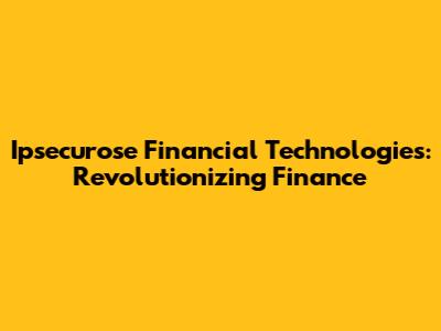 Ipsecurose Financial Technologies: Revolutionizing Finance