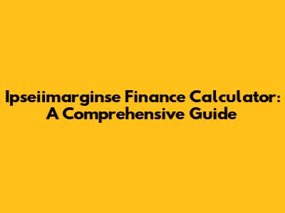 Ipseiimarginse Finance Calculator: A Comprehensive Guide