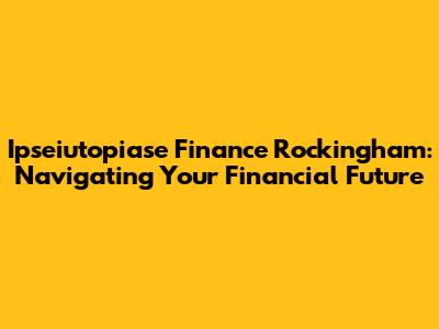 Ipseiutopiase Finance In Rockingham: Your Financial Roadmap