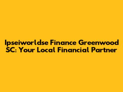 Ipseiworldse Finance Greenwood SC: Your Local Financial Partner