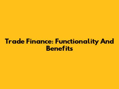 Trade Finance: Functionality And Benefits