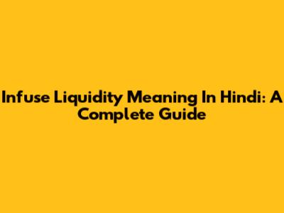 Infuse Liquidity Meaning In Hindi: A Complete Guide