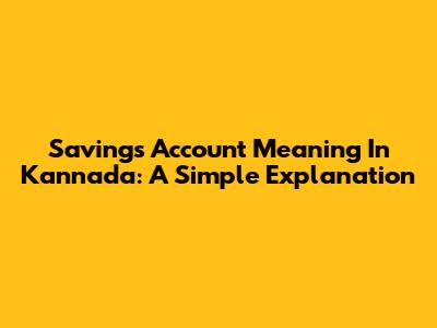 Savings Account Meaning In Kannada: A Simple Explanation