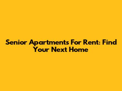 Senior Apartments For Rent: Find Your Next Home