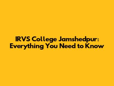 IRVS College Jamshedpur: Address, Courses, And More!