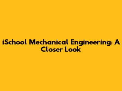 ISchool Mechanical Engineering: A Closer Look