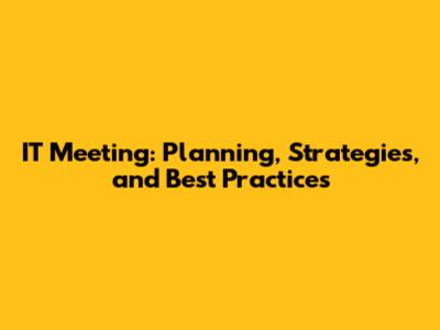 IT Meeting: Planning, Strategies, And Best Practices