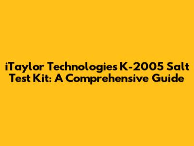 Hey guys! Today, we're diving deep into the iTaylor Technologies K-2005 Salt Test Kit. If you're managing a saltwater pool or any system where salt levels are crucial, you know how important it is to get accurate readings. This kit is a popular choice, and for good reason. It’s designed to be user-friendly while providing reliable results. We'll break down everything you need to know about this kit, from what it includes to how to use it properly and troubleshoot common issues. By the end, you’ll be a pro at maintaining the perfect salt levels, keeping your water balanced and your equipment running smoothly. So, grab your kit, and let's get started!