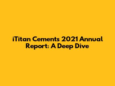 Hey guys! Let's dive deep into the iTitan Cement 2021 Annual Report. I know, annual reports might seem like snooze fests, but trust me, they're goldmines of information, especially when you're trying to understand a company's performance, strategy, and future. In this article, we're gonna break down the key highlights of iTitan Cement's 2021 report, making it easy to digest, even if you're not a financial whiz. We'll look at the financials, the market landscape, and what iTitan was up to during that year. Buckle up, because we're about to embark on a journey through the world of cement, construction, and corporate strategy! Let's get started, shall we?