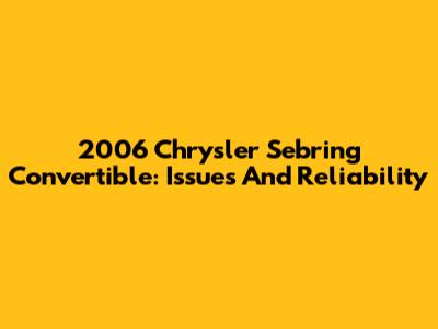 2006 Chrysler Sebring Convertible: Issues And Reliability
