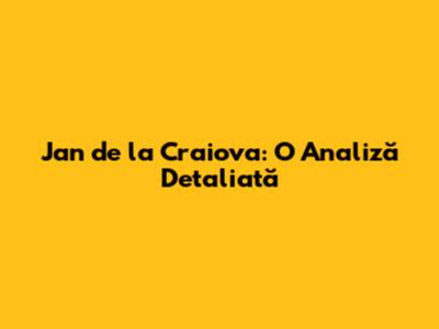 Jan De La Craiova: O Analiză Detaliată