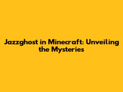 Jazzghost In Minecraft: Unveiling The Mysteries