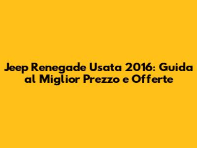 Ciao a tutti, appassionati di motori! Se state valutando l'acquisto di una Jeep Renegade usata del 2016, siete nel posto giusto. In questa guida completa, vi sveleremo tutto ciò che c'è da sapere per trovare l'offerta migliore e assicurarvi un affare. Parleremo di prezzo, caratteristiche, cosa controllare prima dell'acquisto e molto altro. Preparatevi a diventare degli esperti nel mercato dell'usato!
