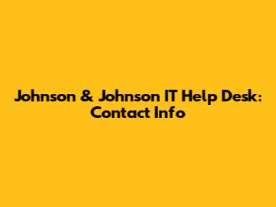 Johnson & Johnson IT Help Desk: Contact Info