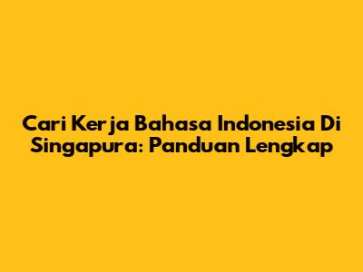 Cari Kerja Bahasa Indonesia Di Singapura: Panduan Lengkap