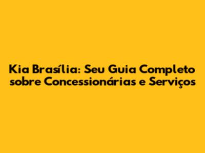 Kia Brasília: Tudo Sobre Concessionárias E Serviços