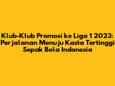 - Siapa saja klub yang promosi ke Liga 1 2023? Jawab: Akan ada beberapa klub yang berhasil promosi ke Liga 1 2023, yang biasanya ditentukan melalui hasil akhir Liga 2. Informasi detailnya akan selalu diperbarui.