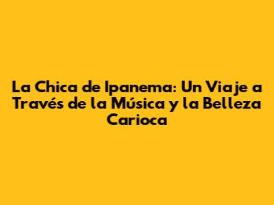 Así que, la próxima vez que escuches la canción, cierra los ojos e imagina a la "Garota de Ipanema" caminando por la playa, dejando una estela de belleza y misterio a su paso. ¡Disfruta de la magia de la música! Y recuerda, la belleza está en todas partes, solo hay que saber mirarla y escucharla con el corazón.