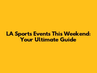 LA Sports Events This Weekend: Your Ultimate Guide