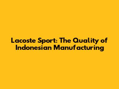 Lacoste Sport: The Quality Of Indonesian Manufacturing