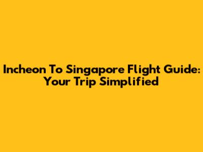 Incheon To Singapore Flight Guide: Your Trip Simplified