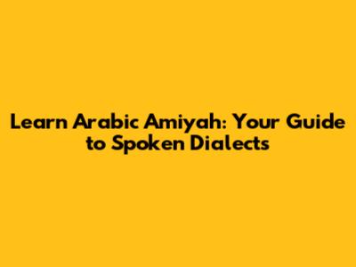 Learn Arabic Amiyah: Your Guide To Spoken Dialects