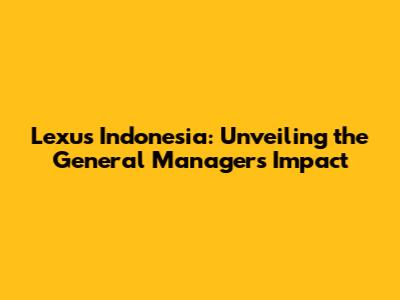 Lexus Indonesia: Unveiling The General Manager's Impact