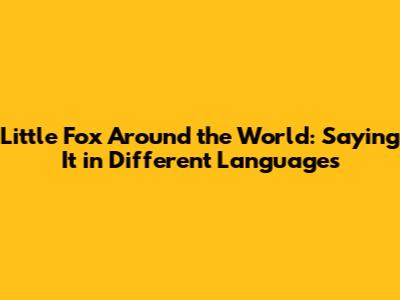 Have you ever wondered how to say "little fox" in different languages? It’s a fun way to explore the world and appreciate the diversity of cultures. In this article, we'll embark on a linguistic adventure to discover how various languages depict this adorable creature. So, buckle up and get ready to learn some new words!
