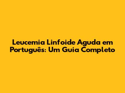 LLA: Entendendo A Leucemia Linfoide Aguda Em Português